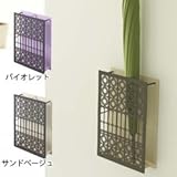 モロッコ柄が印象的なマグネット式アンブレラスタンドです。 マグネットが付いているので玄関の扉などに設置することができます。タテに設置すれば長傘立てとして、ヨコ向きにすれば折り畳み傘を収納するのにピッタリなサイズになります♪カラーはバイオレット、サンドベージュの2種類からお選びいただけます。縦向きで傘4本。横向きで折りたたみ傘が6本。
